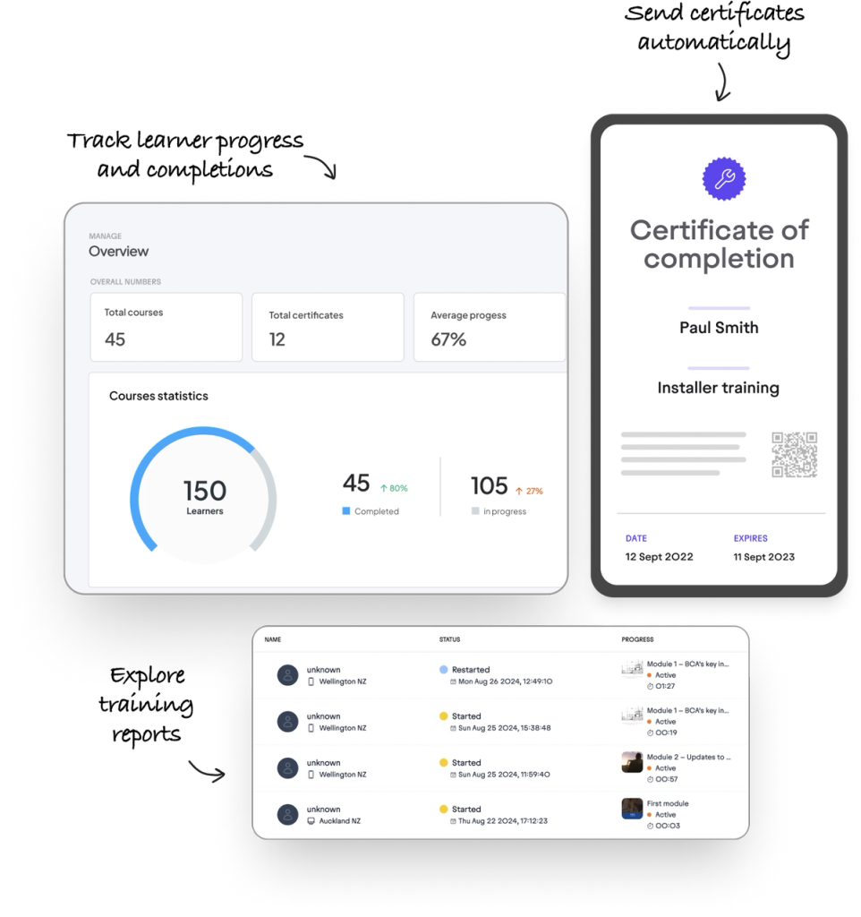 How.io workflows track engagement, record learning and collect documents for certification and automated compliance.